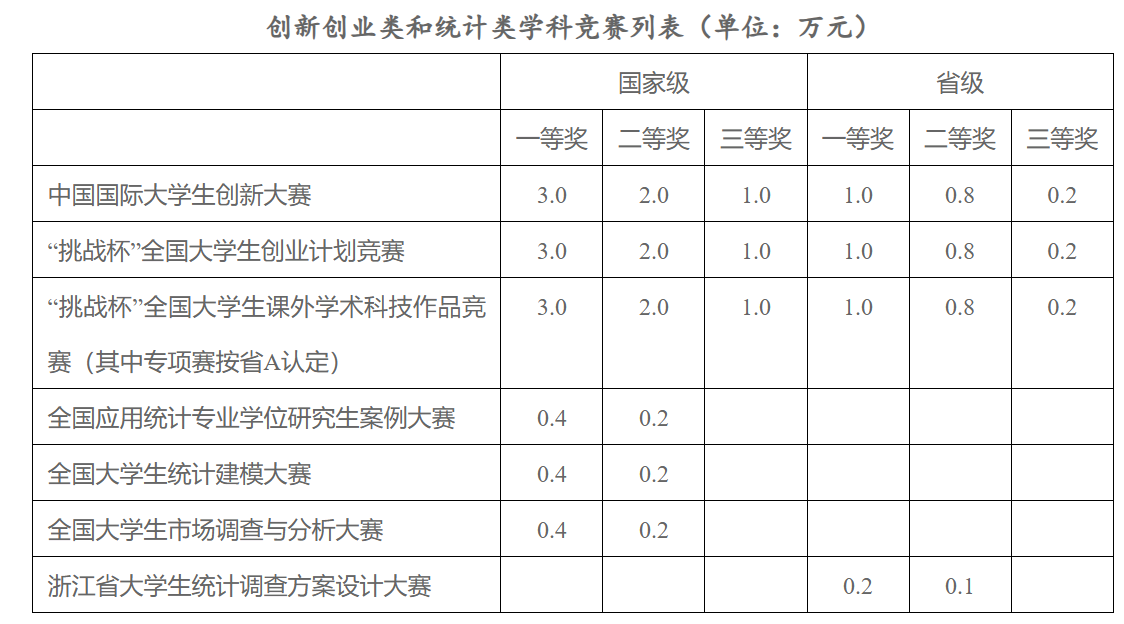 注:1.个人赛学生须来自数科学院,团体赛须有1/2学生来自数科学院且自然排名第1的学生须来自数科学院,否则不予资助。2.全国应用统计专业学位研究生案例大赛入选浙江省优秀研究生教学案例的,可作为C类项目的结项条件之一,也可根据等效办法,作为科研类项目的结题成果。