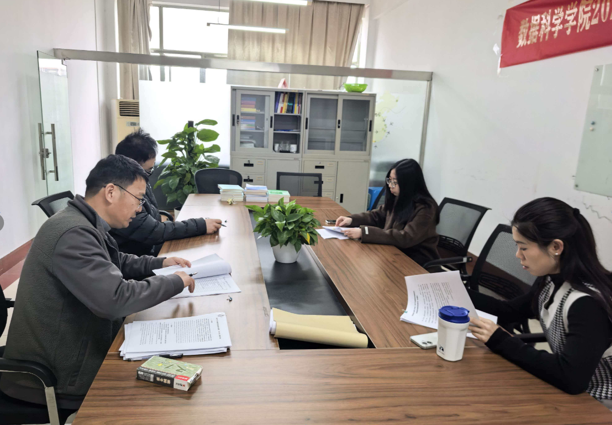 2026年3月24日下午,数据科学学院在学院楼 409 会议室召开新进教师教学规范培训会,旨在夯实新教师教学规范意识,保障本科教学高质量开展。培训会由教学院长郑松主持,张天奇、宋智颖新进教师参加。