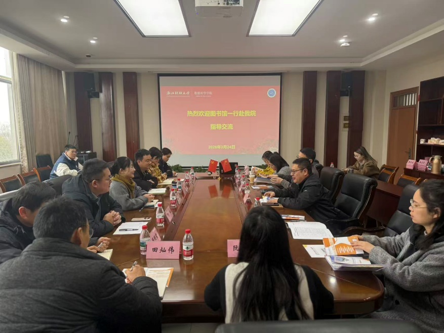 为进一步深化馆院协作,精准对接数据科学学科建设、教学科研与人才培养实际需求,推动图书情报资源与学院发展深度融合,3月24日上午,学校图书馆由党总支书记杨小恩、副馆长崔泰铭、专聘副馆长丁松带队,各核心业务部门负责人及专属学科馆员一行,莅临我院开展专题调研座谈。学院党委书记段雪辉、副院长郑松、师生代表、相关中心负责人共同参与交流,双方围绕学术资源保障、高层次人才服务、“一生一方案”人才培养模式改革支撑等核心议题深入沟通,共谋协同发展新思路。