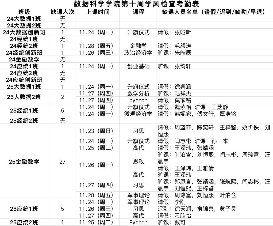 下一条:数据科学学院2025-2026学年第一学期第9周随机抽查结果通报