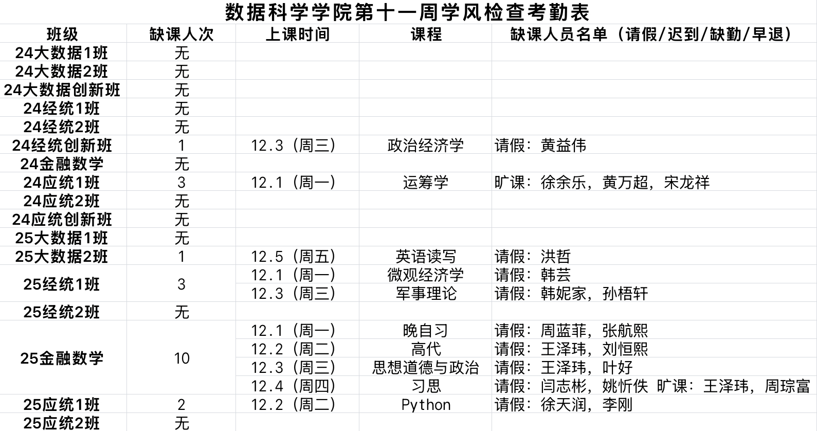 学院后续将常态化开展学风巡检抽查,希望同学们严守课堂行为规范,禁止“三无”行为,杜绝旷课、迟到、早退、代课等不良现象,共同营造“好学、勤学、乐学”的优良学气。
