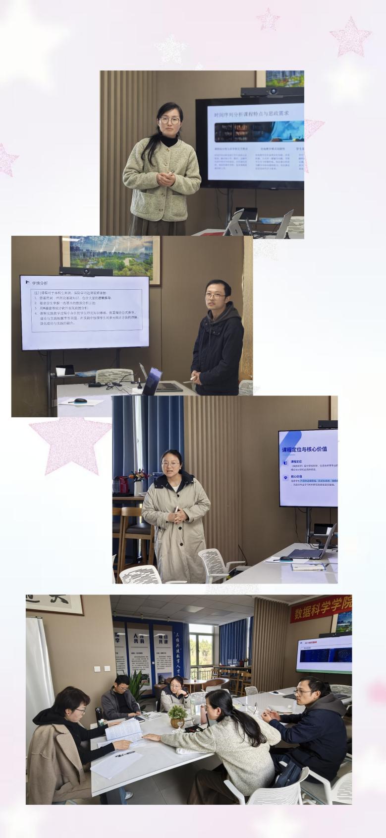 为积极响应学校《关于举办第六届教师教学创新大赛的通知》要求,以赛促教推动教育教学质量提升,11 月 25 日下午,数据科学学院在 400 会议室举行第六届教师教学创新大赛院内选拔赛。本次选拔赛由学院教学院长郑松主持,校内专家孟泽红参与,张丹丹、沈银芳、韦阳三位教师同台竞技,展现了扎实的教学功底与鲜明的创新理念。