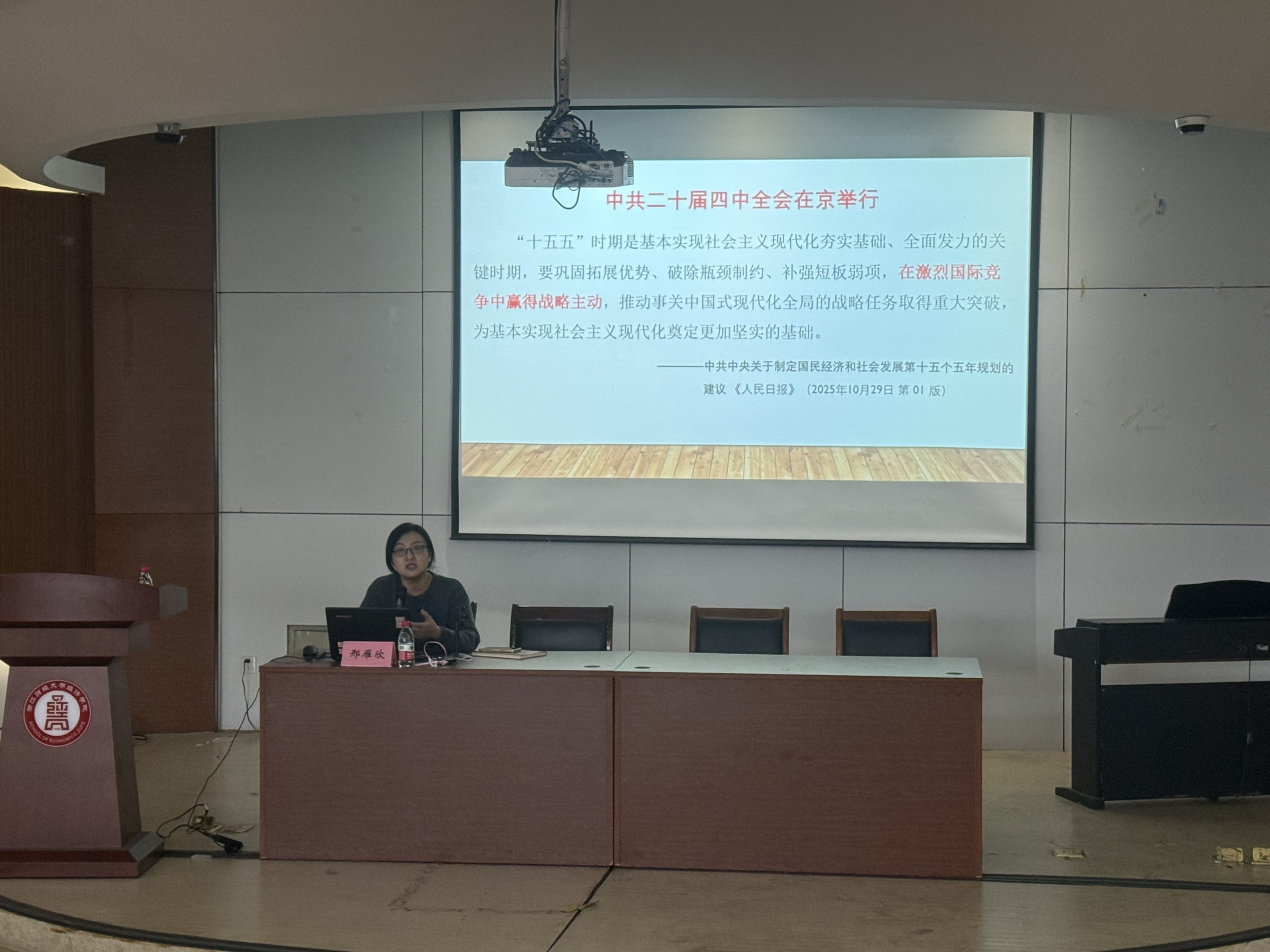 为推动二十届四中全会精神落地落实、见行见效,2025年12月2日下午,数据科学学院举办了以“学习贯彻二十届四中全会精神”为主题的“数科讲坛”第7期专题讲座,引导全院教职工领会全会核心要义,切实把思想和行动统一到全会部署上来。本次讲座特别邀请马克思主义学院邢雁欣老师担任主讲人,学院全体教职工参与学习。